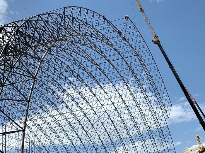 (2)网架加工前应对现场尺寸进行复测,确认无误后方可进行加工、安装;网架制作、运输、安装应遵守《空间网格结构技术规程》JGJ7-2010、《钢网架格尔木螺栓球节点》JG/T 10-2009、《钢网架格尔木螺栓球节点用高强度螺栓》 GB/T 16939-2016、《格尔木钢结构格尔木工程格尔木施工规范》 GB50755-2012、《格尔木钢结构格尔木工程格尔木施工质量验收标准》 GB50205-2020。